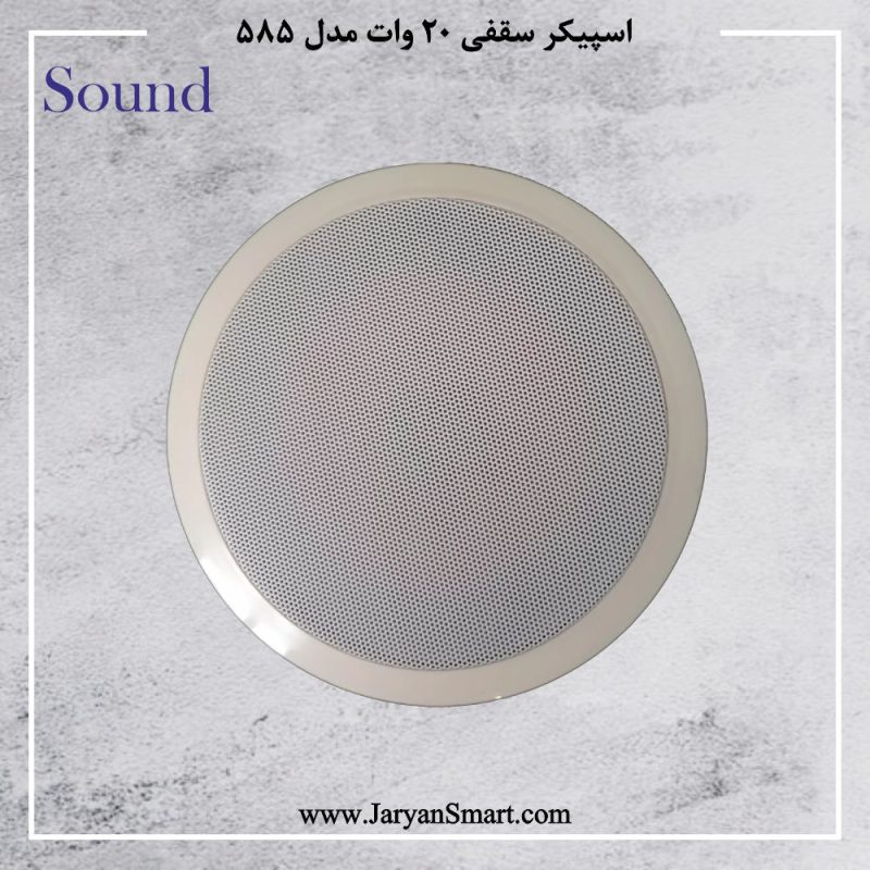 اسپیکرهای سقفی دستهای از اسپیکرها هستند که برای نصب داخل سقفهای کاذب طراحی و تولید شدهاند. این نوع اسپیکرها با توجه به مشخصههایی که دارند، برای فضاهای متنوع با حجم و کیفیت متفاوت صدا مناسب میباشند. در فضاهایی مانند سالن پذیرایی، اتاقهای نشیمن و خواب، سرویس بهداشتی، استخر، دفاتر کار، مغازهها، رستورانها، مدارس و… میتوان آنها را به راحتی در سقفهای گچی و کنافی نصب نمود.همچنین این اسپیکر با تکنولوژی پسیو (Passive) با مقاومت 8 اُهم و تکنولوژی 2way (دارای ووفر و تیوتر) میباشند. اجزای تشکیلدهنده اسپیکرها شامل آهنربا، دیافراگم، تیوتر، بدنه و… میباشد.اسپیکر سقفی 585 با قطر گردبر سقف 16.5 سانتیمتر، دیافراگم 6.5 اینچی، توان ماکزیمم 50 وات برای سالنهای پذیرایی، نشمینها، TVroomها و فضاهای داخلی مناسب است. هر اسپیکر قادر است فضایی به مساحت تقریباً 20 مترمربع و به ارتفاع سقف حداکثر 3.5 متر را پوشش دهد.