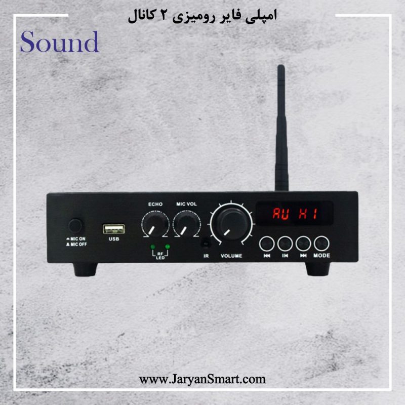 آمپلی فایر تمام اهمی دارای صفحه نمایشگر، دارای کلید ولوم جهت کنترل صدای خروجی، ورودی USB، بلوتوث، رادیو FM، ورودی AUX، خروجی AUX، یک ورودی میکروفن با کلید های کنترلی میکروفن ها، ریموت کنترل IR، ورودی برق 220 ولت AC
