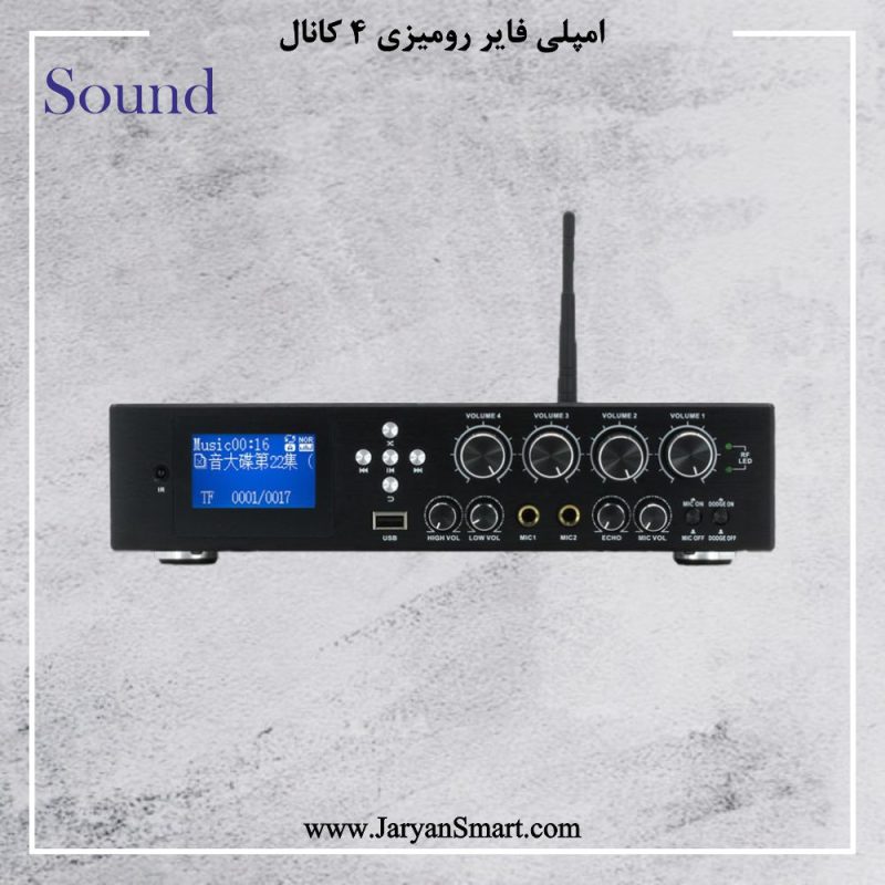 آمپلی فایر تمام اهمی دارای صفحه نمایشگر، دارای 4 کلید ولوم جهت کنترل هر یک از خروجی ها، ورودی USB، بلوتوث، رادیو FM، دو درگاه ورودی AUX، خروجی AUX، دو ورودی میکروفن با کلید های کنترلی میکروفن ها، ریموت کنترل IR، ورودی برق 220 ولت AC