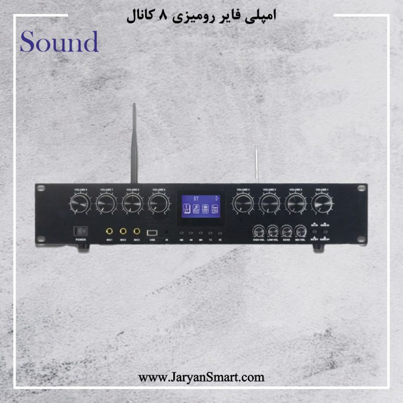 آمپلی فایر تمام اهمی دارای صفحه نمایشگر، دارای 8 کلید ولوم جهت کنترل هر یک از خروجی ها، ورودی USB، بلوتوث، رادیو FM، دو درگاه ورودی AUX، خروجی AUX، سه ورودی میکروفن با کلید های کنترلی میکروفن ها، ریموت کنترل IR، ورودی برق 220 ولت AC
